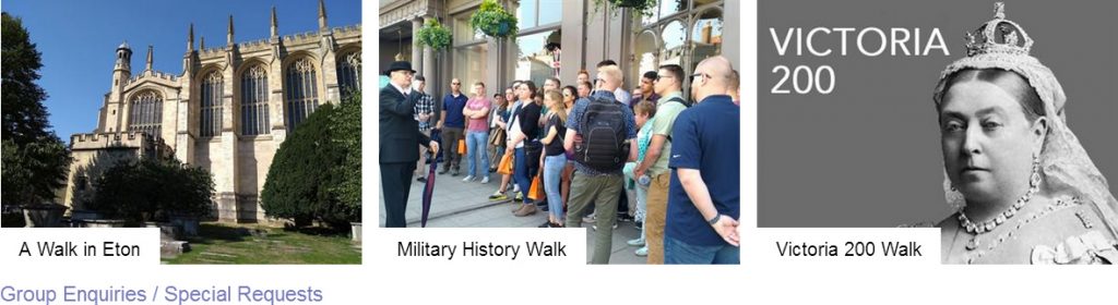 Out Now! tickets for 2019. We have three big walks to choose from A Walk in Eton, The Military History Walk and Victoria 200. All available here.
