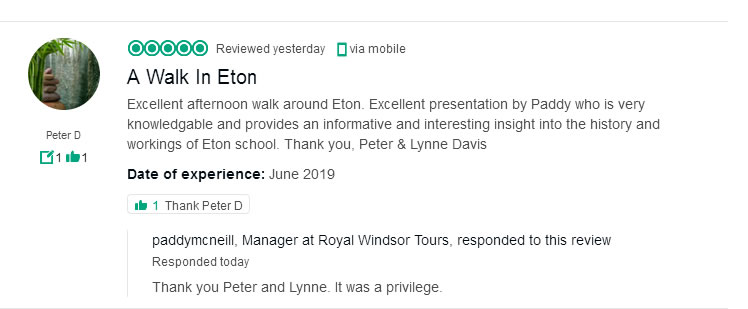 It is such an honour to be doing this. We are very pleased with our latest review for A Walk in Eton.